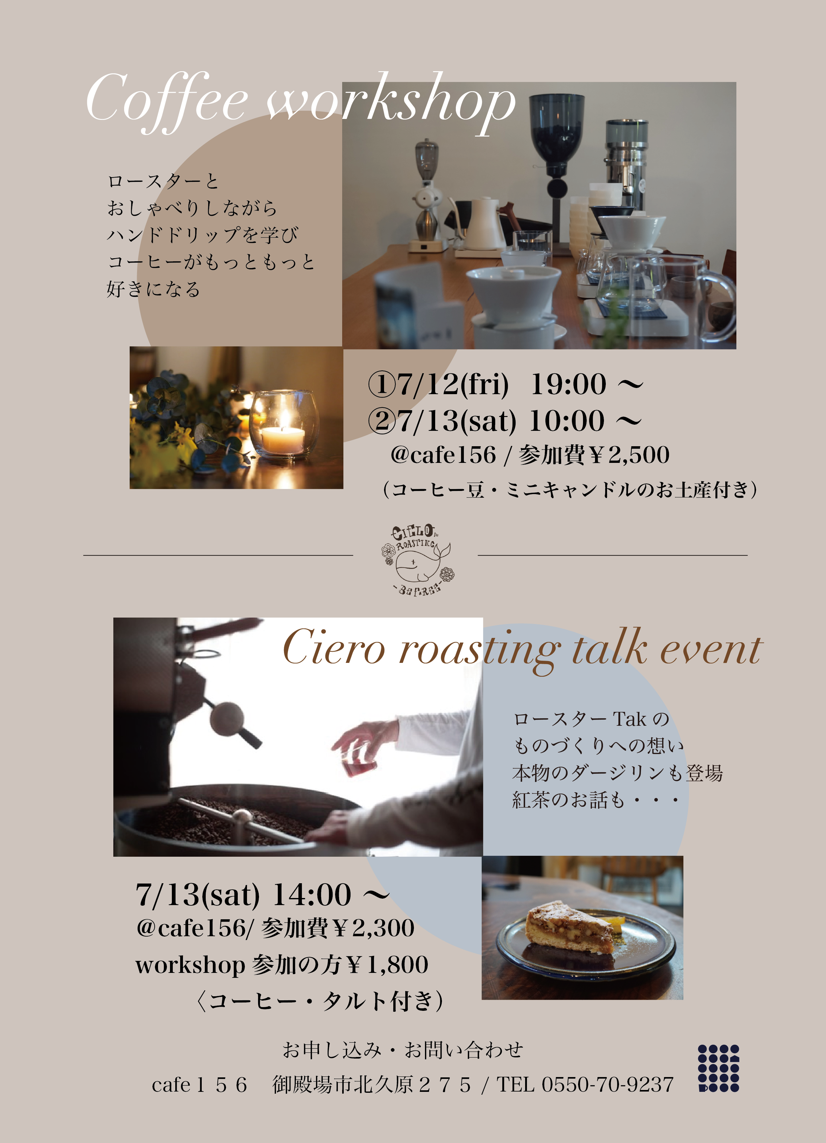 Ciero roastingのコーヒーワークショップ開催のお知らせです。